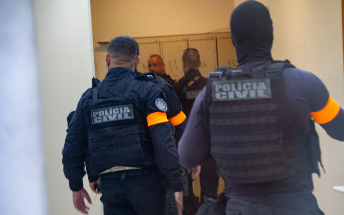 Outras três pessoas foram presas. Agentes da DRE cumprem mandados de prisão e de busca e apreensão
