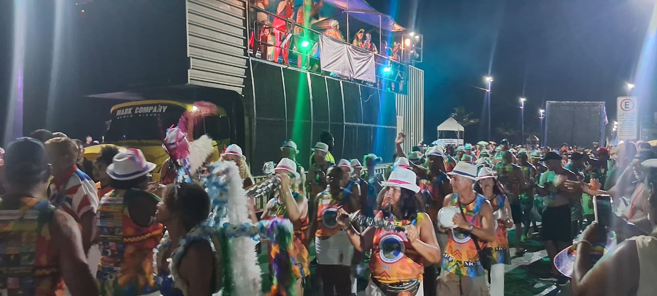 Percorrendo o tradicional Circuito Claudinho Guimarães, o bloco transformou a orla em um grande corredor da folia. Ao som de marchinhas, samba e outros ritmos carnavalescos, foliões acompanharam o trajeto com fantasias criativas, bandeiras e muita descontração.