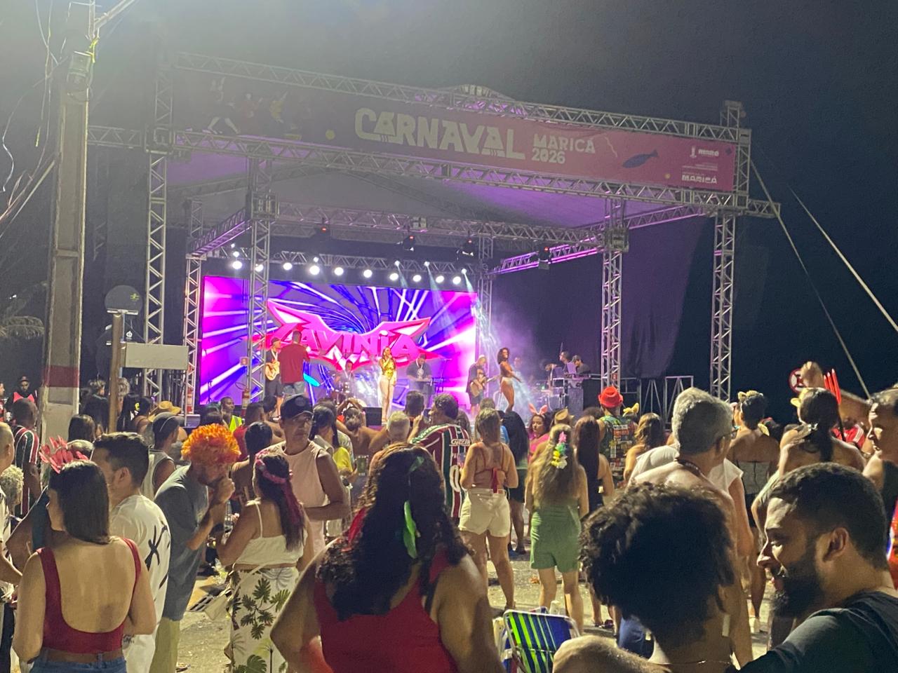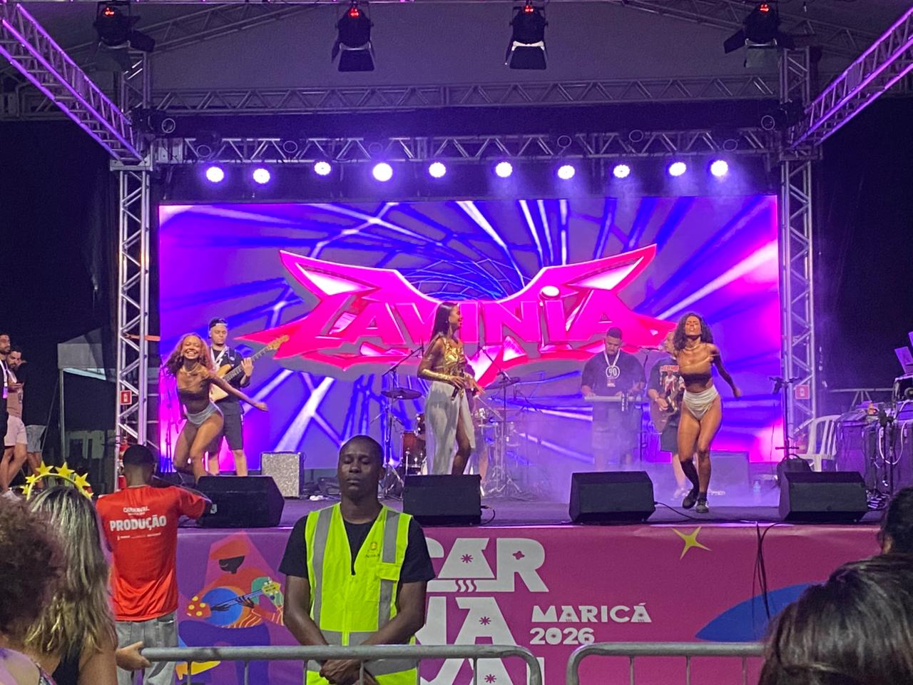 A noite de Carnaval em Itaipuaçu foi marcada por muita música e animação com a apresentação da cantora Lavínia Guimarães, que reuniu um grande público na orla durante a programação do Carnaval de Maricá 2026.